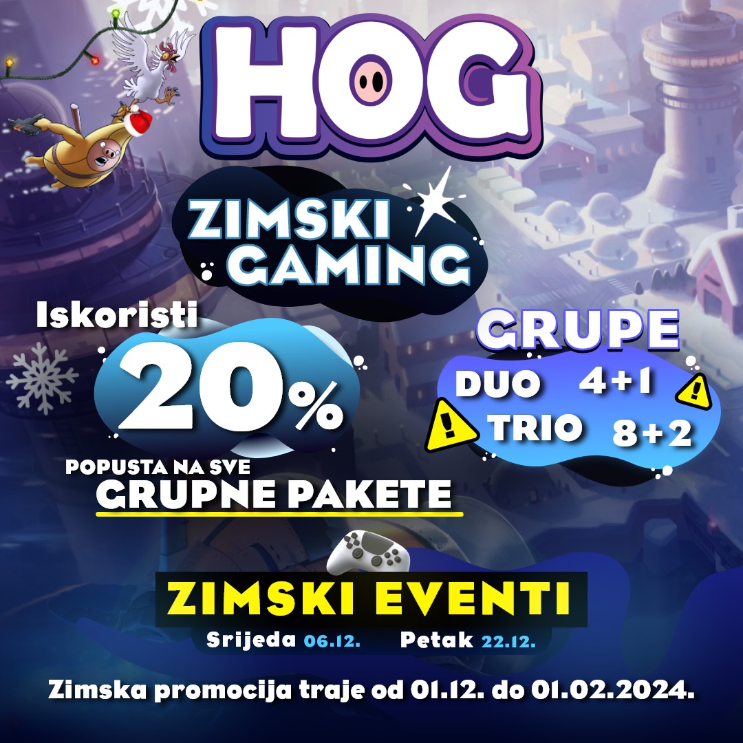 - 22.12.2023. – CHRSITMAS WARMUP: Konačno donosimo što smo sve pripremili! Prijavi ekipu na najjače turnire u najboljoj igraoni – više informacija saznaj na: HogWinterShowdown, čekaju vas super nagrade!